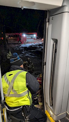 The school buses came about 10:45p, but it was only two of them - along with train 355. Local firefighters and police helped get people onto the buses, but (and I overheard this directly) they didn't account for the luggage so they filled up before about 20 of us could get on. We were told that the buses would make the trip to drop people off and then one would return for the rest of us, but we were allowed to board 355 to warm up in the meantime. We overheard from the crew that the batteries on 352 finally died a few minutes after 11p - made it off just in time.